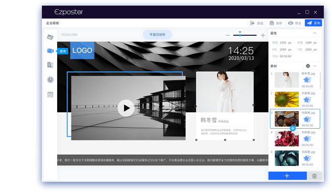 基于局域網,是為中小企業量身定制的輕應用信息發布管理軟件,即裝即用,方便簡單;高品質內容,五分鐘制作;區域設備,一鍵發布,省去部署、培訓及維護成本,廣泛適用于小型餐飲、政企、展覽展示、酒店、商場、電影院等場景。